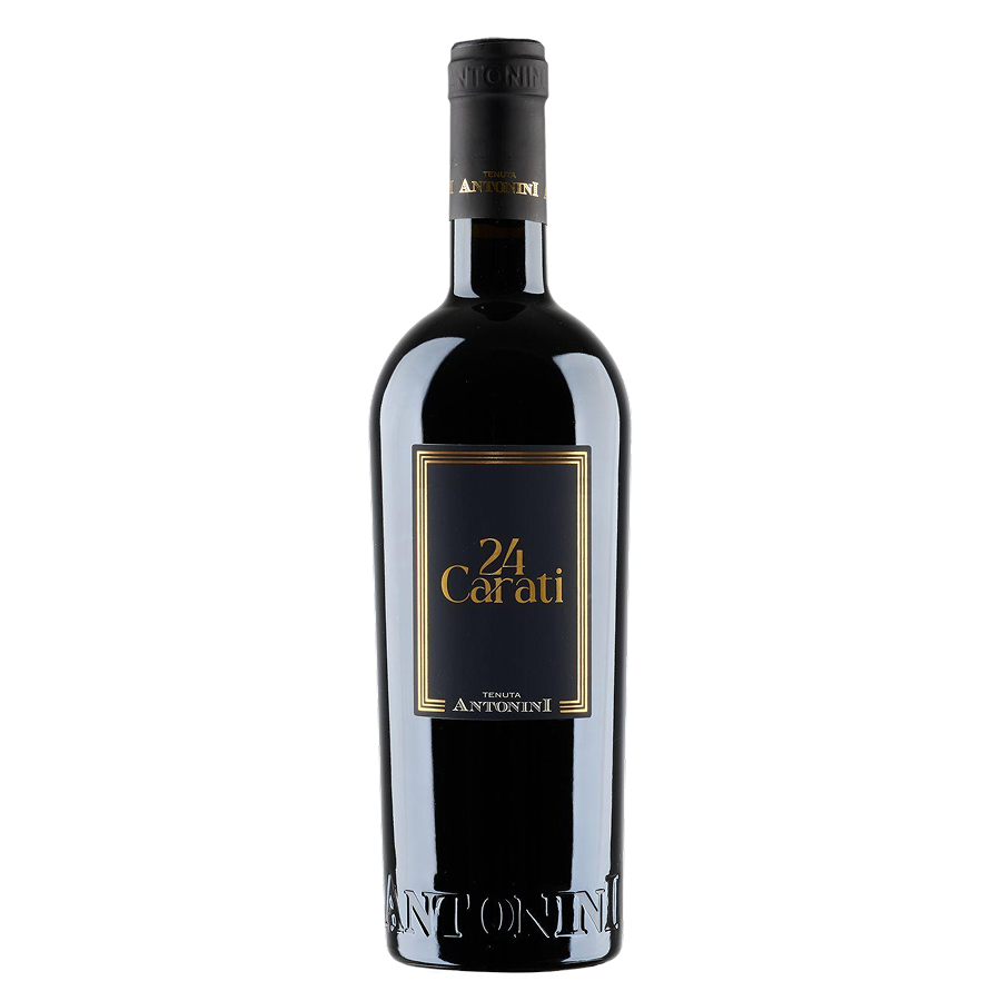 The 24 Carati red wine, most often referring to the Tenuta Antonini 24 Carati, is an Italian red wine, typically made from the Montepulciano grape, known for its intense ruby red color, and a complex bouquet of plum, cherry, tobacco, and vanilla notes, with hints of spice and oak. It is a full-bodied, soft, and rich wine with well-integrated tannins, aged in oak barrels for at least 12 months. This wine is often described as an ideal pairing for red meat and game dishes, and is recommended to be served at 18-20°C to fully appreciate its aromas.